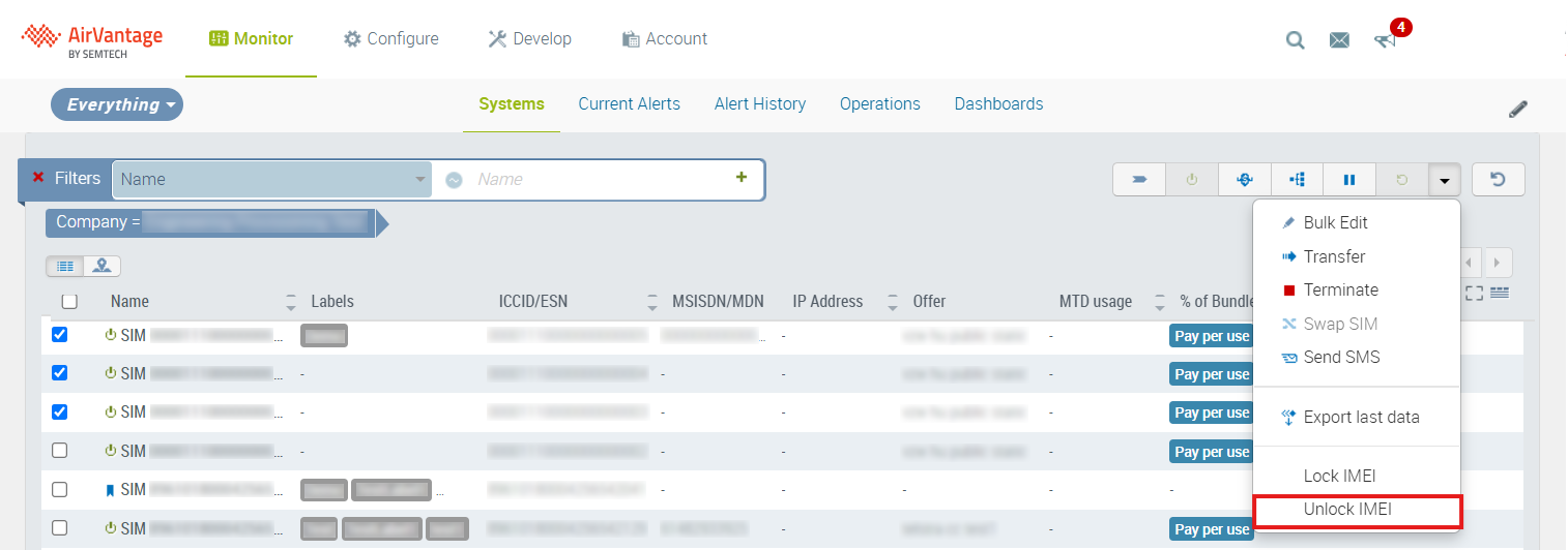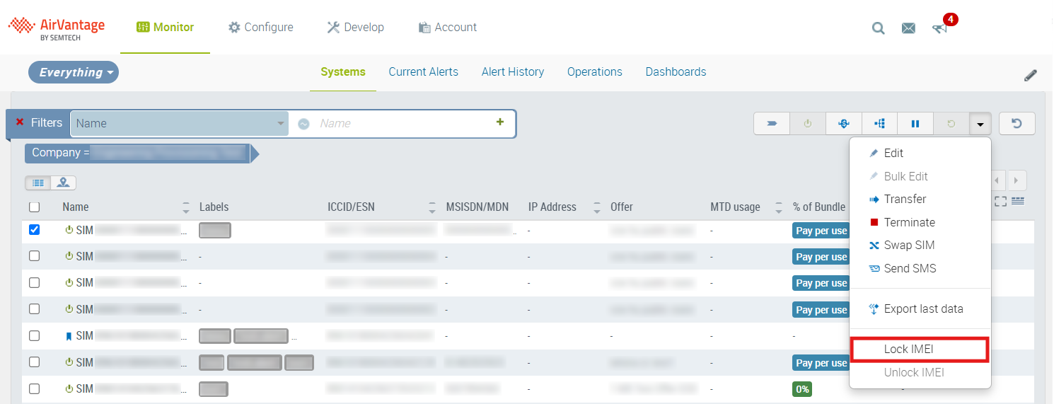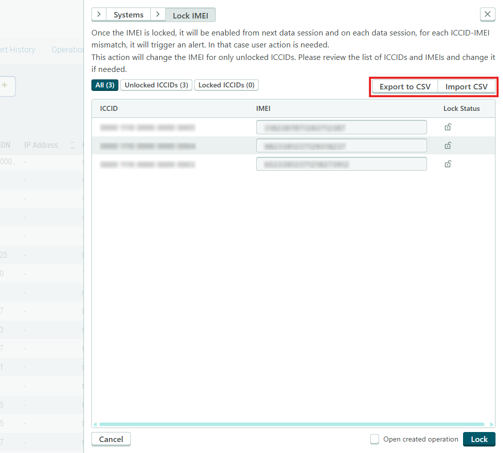 The IMEI Lock feature can be applied in two ways: individually (single system) or in bulk (multiple systems).