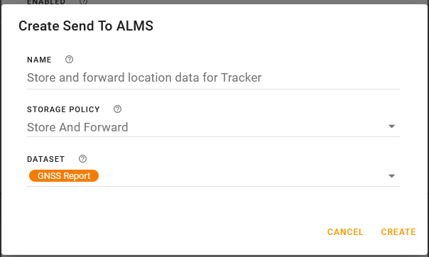 In Create Send To ALMS, enter a NAME such as “Store and forward location data for Tracker”.
