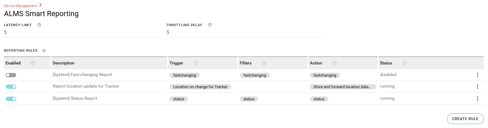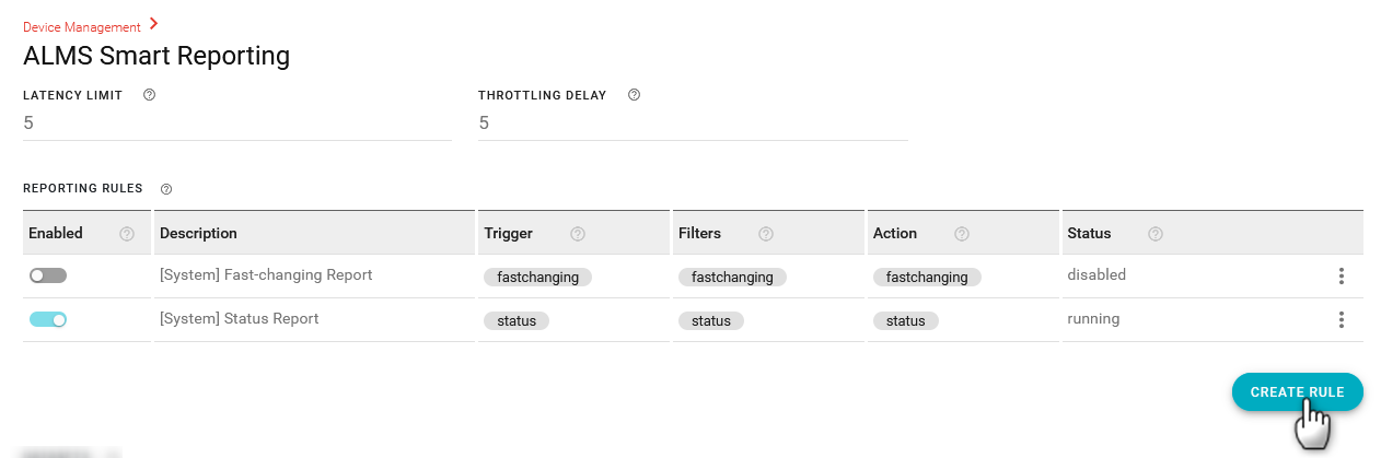 Under the REPORTING RULES table, click CREATE RULE.