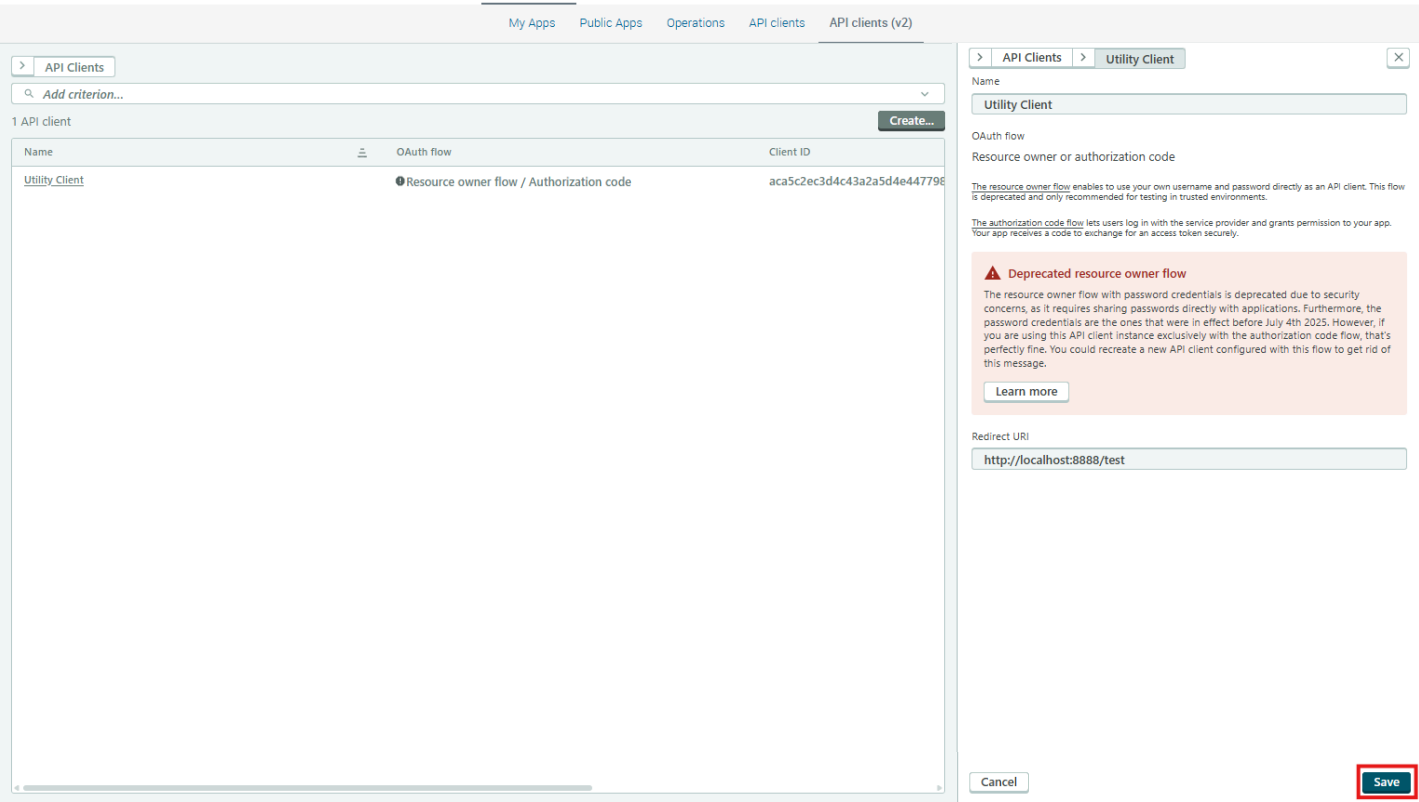 For API clients using the Client Credentials flow, you can edit: