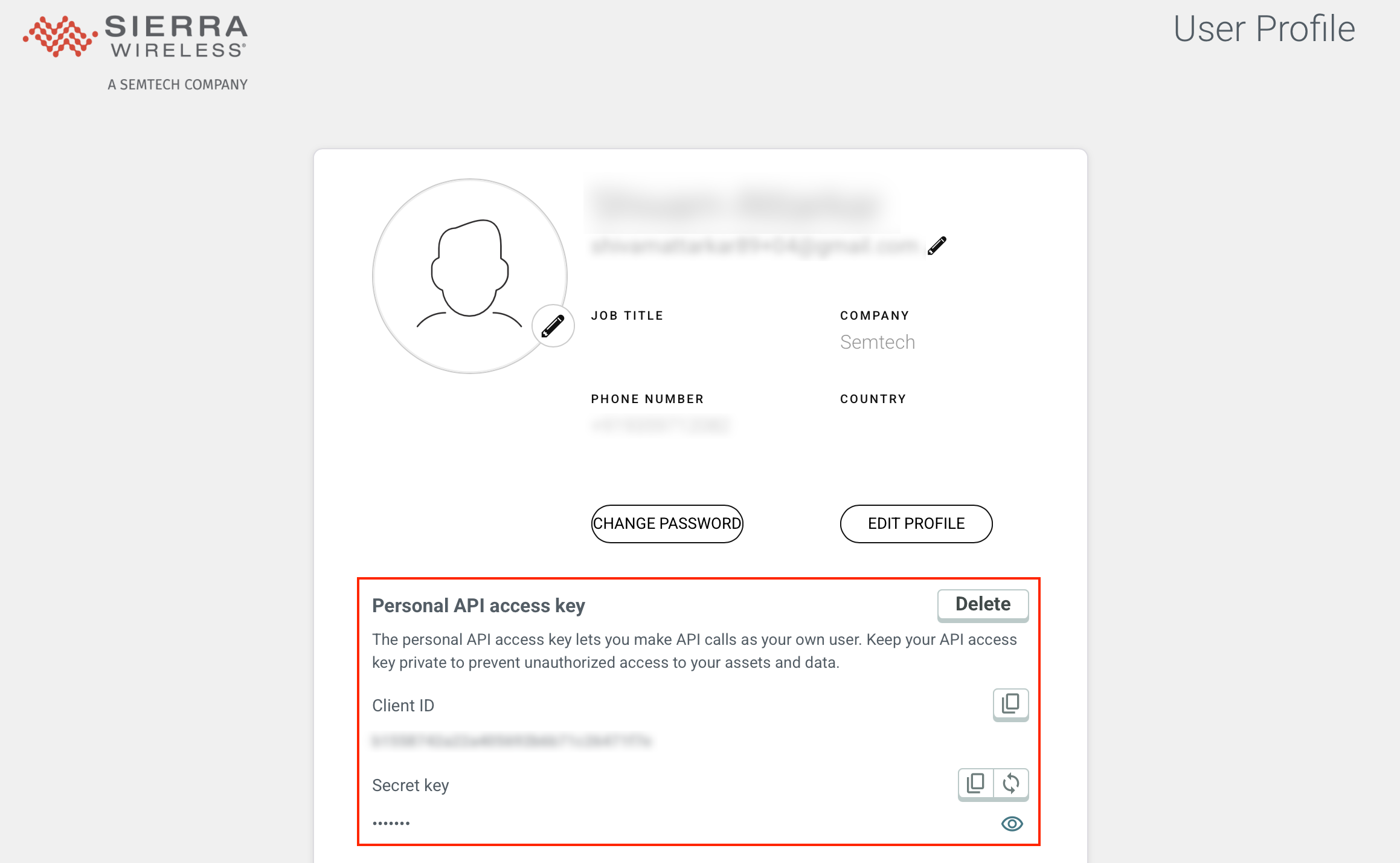 In the Personal API access key section, click Delete. A prompt will be displayed to confirm whether you want to delete the personal API access key.
