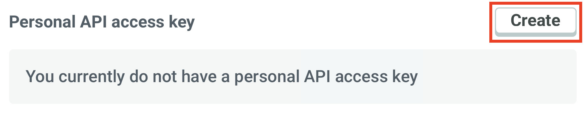 Navigate to your User Profile by following the steps outlined in the Accessing Personal API Section . Initially, you will see a message indicating that you don’t have a personal API access key.