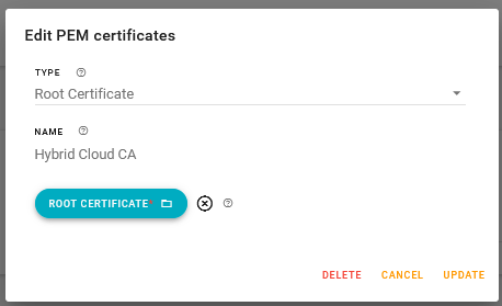 Click ROOT CERTIFICATE to upload your root certificate (.pem file).