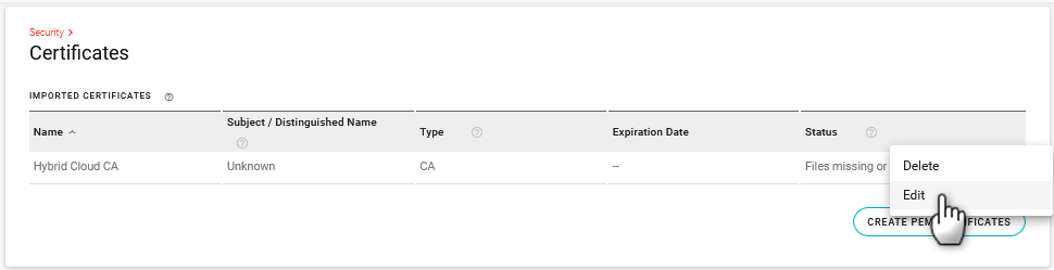 Click the three vertical dots and edit the “Hybrid Cloud CA” entry.