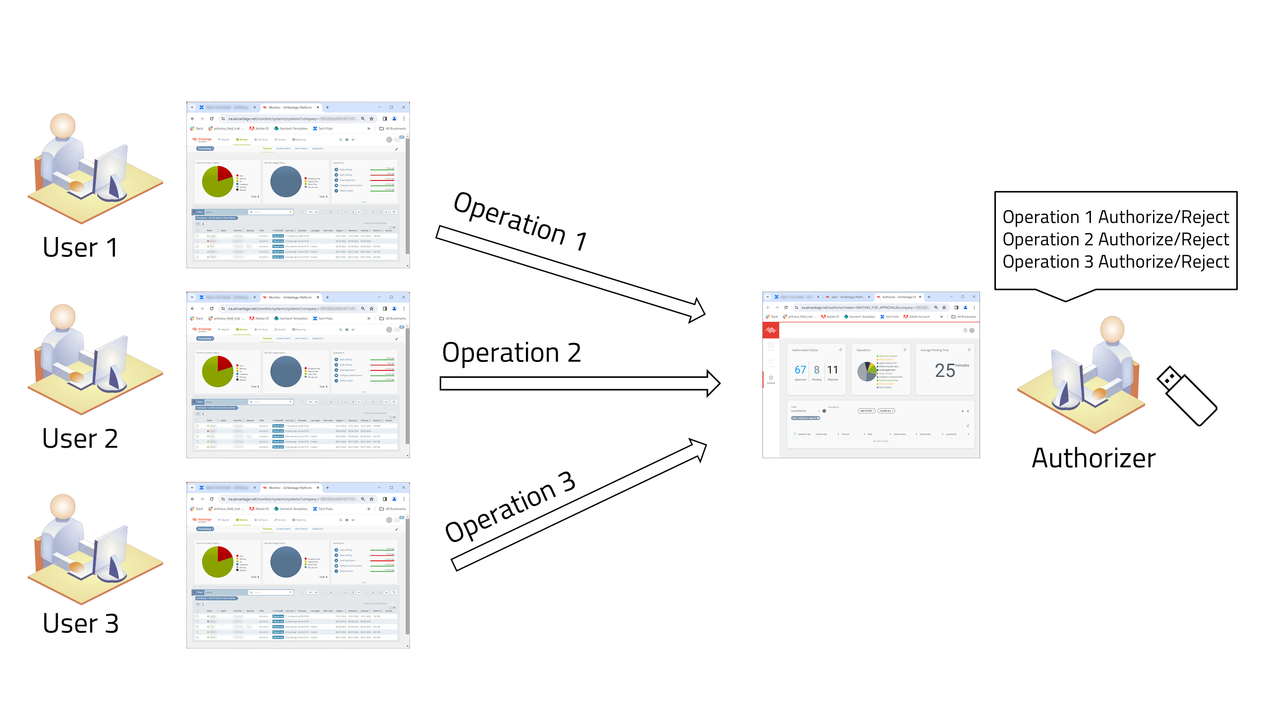 This page explains the changes in the operation of ALMS and the new tasks required of Hybrid Cloud Users and Authorizers. An overview of the relationship between the roles is shown below.