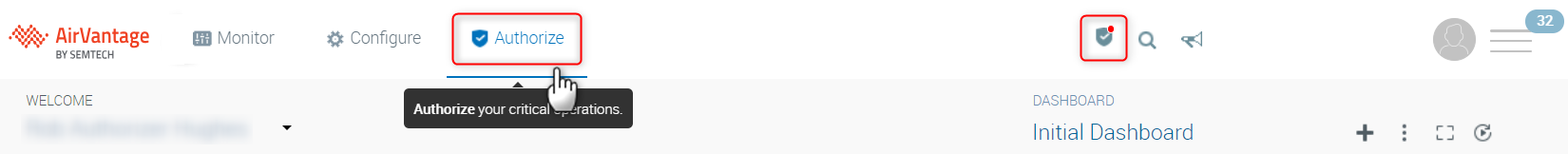When you receive operation notifications by email, log in to your ALMS account and go to the Authorize tab. Alternatively, you can click the Authorization notification icon on the top right. The red dot indicates that you have pending notifications.