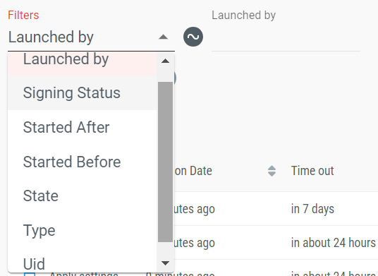 You can use filters to locate and identify operations for approval or rejection. Click ADD FILTER.